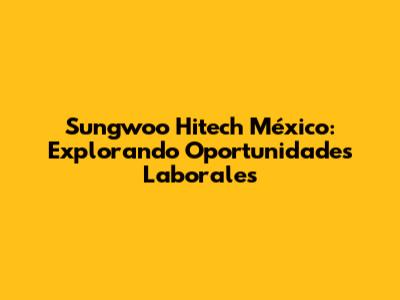 Sungwoo Hitech México: Oportunidades Laborales Y Guía Completa