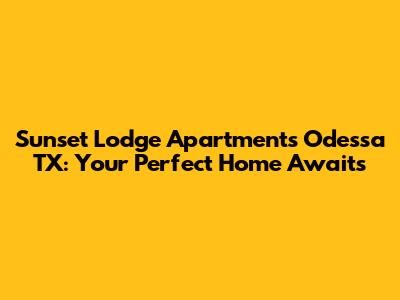 Hey guys! Are you on the hunt for a fantastic apartment in Odessa, TX? Look no further than Sunset Lodge Apartments! This place isn't just a set of buildings; it's a community where you can truly feel at home. Whether you're a young professional, a small family, or anyone in between, Sunset Lodge offers a variety of floor plans and amenities designed to make your life comfortable and convenient. Let's dive into what makes Sunset Lodge Apartments in Odessa, TX, such a great place to live.