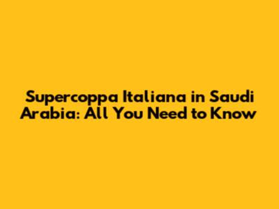 Supercoppa Italiana In Saudi Arabia: All You Need To Know
