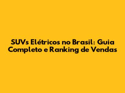 SUVs Elétricos No Brasil: Guia Completo E Ranking De Vendas