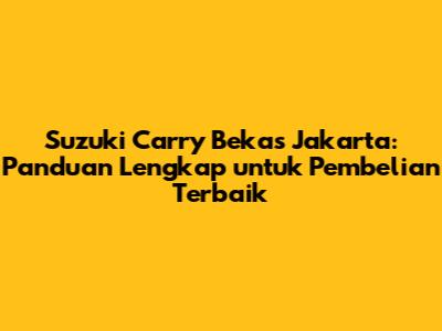 Suzuki Carry Bekas Jakarta: Panduan Lengkap Untuk Pembelian Terbaik