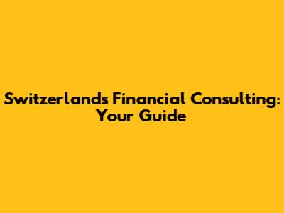 Switzerland's Financial Consulting: Your Guide