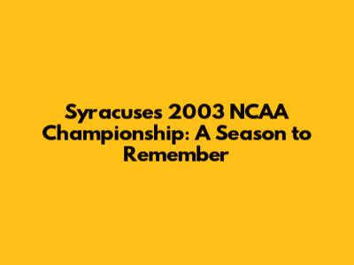 Syracuse's 2003 NCAA Championship: A Season To Remember
