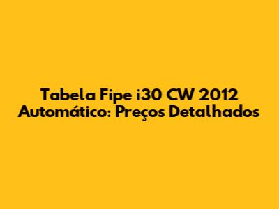 Tabela Fipe I30 CW 2012 Automático: Preços