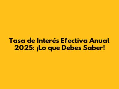 Tasa De Interés Efectiva Anual 2025: ¡Lo Que Debes Saber!