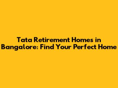 Tata Retirement Homes: Find Your Perfect Bangalore Home