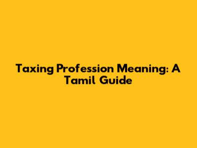 Taxing Profession Meaning: A Tamil Guide