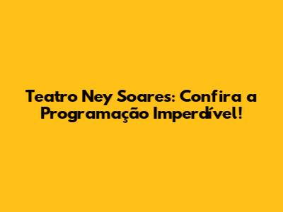 Teatro Ney Soares: Confira A Programação Imperdível!