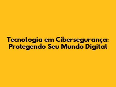 Tecnologia Em Cibersegurança: Protegendo Seu Mundo Digital