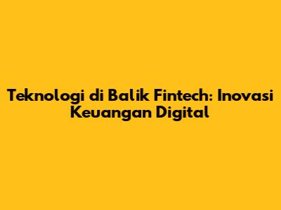 Teknologi Di Balik Fintech: Inovasi Keuangan Digital