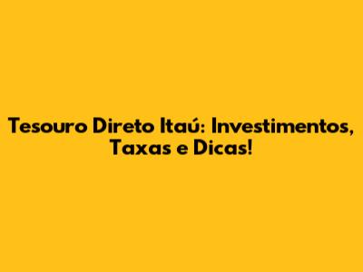 Tesouro Direto Itaú: Investimentos, Taxas E Dicas!