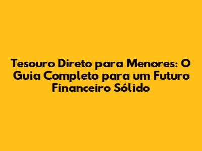 Investir no Tesouro Direto para menores é uma das melhores decisões financeiras que você pode tomar para o futuro dos seus filhos. É uma forma segura, acessível e rentável de construir um futuro financeiro sólido para eles, ao mesmo tempo em que ensina a importância da educação financeira desde cedo. Com este guia completo, você tem todas as informações necessárias para começar a investir no Tesouro Direto para menores. Lembre-se de seguir os passos, escolher os títulos certos, diversificar seus investimentos e manter a disciplina. Com paciência e dedicação, você estará construindo um futuro financeiro brilhante para seus filhos. Comece hoje mesmo essa jornada! Seus filhos e seu futuro financeiro vão te agradecer!