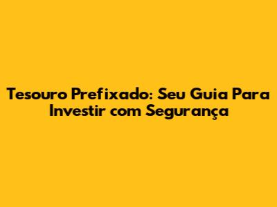 Tesouro Prefixado: Seu Guia Para Investir Com Segurança