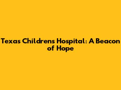 Texas Children's Hospital: A Beacon Of Hope