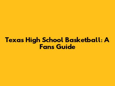 Texas High School Basketball: A Fan's Guide