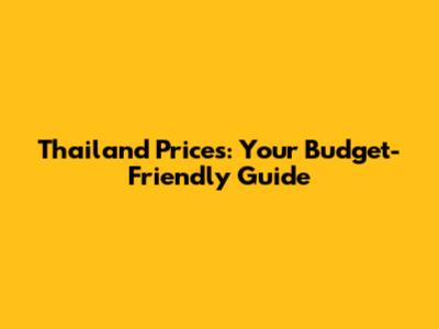 Thailand Prices: Your Budget-Friendly Guide