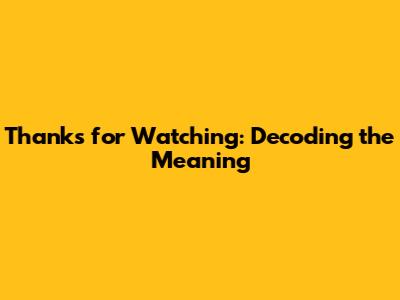 Thanks For Watching: What Does It Really Mean?