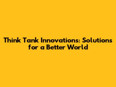 Think Tank Innovations: Solutions For A Better World