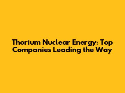 Thorium Nuclear Energy: Top Companies Leading The Way