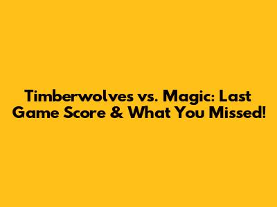 Timberwolves Vs. Magic: Last Game Score & What You Missed!