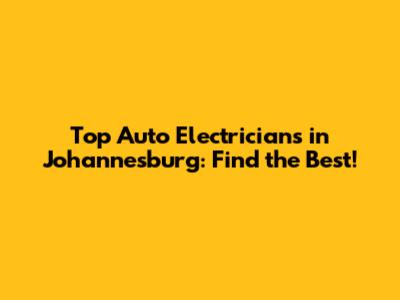 Top Auto Electricians In Johannesburg: Find The Best!