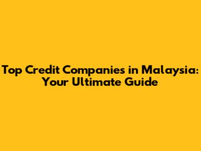 Top Credit Companies In Malaysia: A Comprehensive Guide