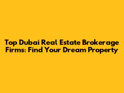 Top Dubai Real Estate Brokerage Firms: Find Your Dream Property