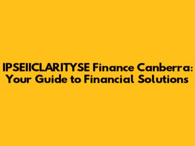 Hey guys! Are you looking for financial solutions in Canberra? Let's dive into what IPSEIICLARITYSE Finance offers and how it can help you achieve your financial goals. Whether you're planning for retirement, seeking investment advice, or need assistance with wealth management, understanding the landscape of financial services is crucial. In this article, we’ll explore the key aspects of IPSEIICLARITYSE Finance in Canberra, providing you with insights to make informed decisions. So, buckle up and let’s get started on this financial journey together!