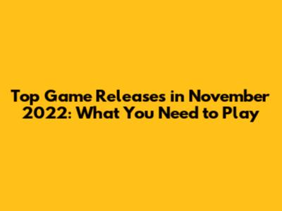 Top Game Releases In November 2022: What You Need To Play