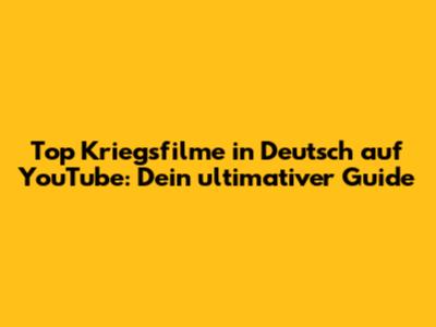 Ich hoffe, dieser Guide hilft euch dabei, die besten Kriegsfilme auf Deutsch auf YouTube zu finden. Viel SpaĂ beim Stöbern und Entdecken! Denkt daran, dass das Angebot auf YouTube stĂ€ndig wechselt. Daher lohnt es sich, regelmĂ€Ăig nach neuen Filmen zu suchen und die oben genannten Tipps zu nutzen.