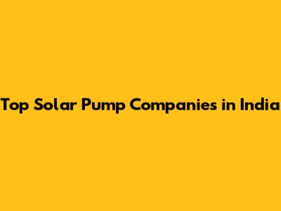 Top Solar Pump Companies In India