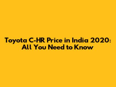 Toyota C-HR Price In India 2020: All You Need To Know