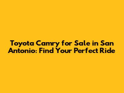 Toyota Camry For Sale In San Antonio: Find Your Perfect Ride