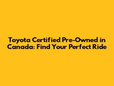 Toyota Certified Pre-Owned In Canada: Find Your Perfect Ride