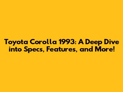 Toyota Corolla 1993: Specs, Features, And More!