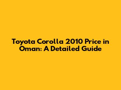 Toyota Corolla 2010 Price In Oman: A Detailed Guide