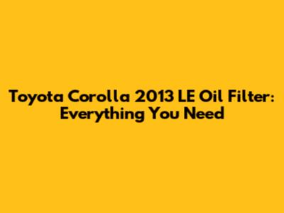 Toyota Corolla 2013 LE Oil Filter: Everything You Need