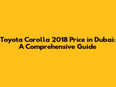 Toyota Corolla 2018 Price In Dubai: A Comprehensive Guide