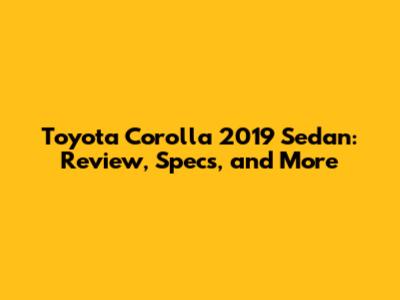 Toyota Corolla 2019 Sedan: Review, Specs, And More