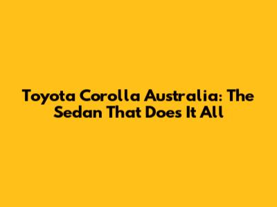 Toyota Corolla Australia: The Sedan That Does It All