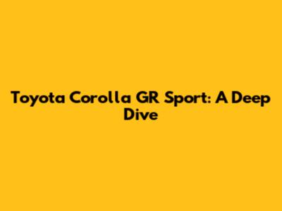 Toyota Corolla GR Sport: Specs, Features & More!