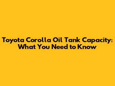 Toyota Corolla Oil Tank Capacity by Model Year