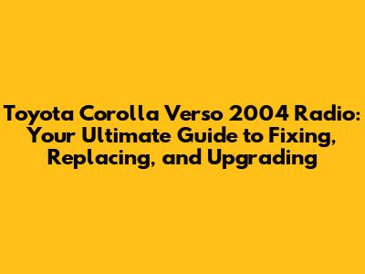 Toyota Corolla Verso 2004 Radio: Fix, Replace, Upgrade