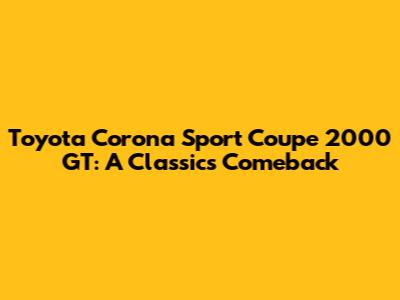 Toyota Corona Sport Coupe 2000 GT: A Classic's Comeback