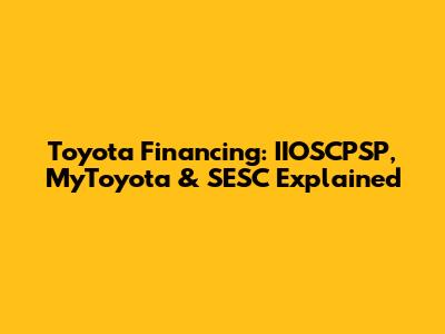 Hey everyone! Ever wondered about financing your shiny new Toyota? It can seem like a jungle out there, with acronyms and terms flying around. Don't sweat it though, because we're going to break down some key players in the Toyota financing game: IIOSCPSP, MyToyota, and SESC. We'll talk about what they are, how they work, and how they can help you get behind the wheel of your dream car. So, grab a coffee (or your beverage of choice), and let's dive in! This comprehensive guide will cover everything you need to know about Toyota financing, making the process smoother and more understandable for everyone. Whether you're a first-time car buyer or a seasoned pro, this information will empower you to make informed decisions about your auto loan.