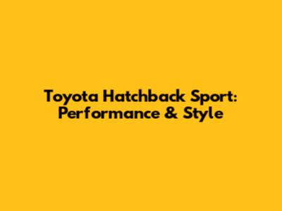 Toyota Hatchback Sport: Performance & Style