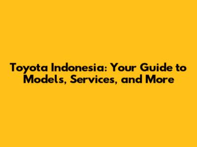 Toyota Indonesia: Your Guide To Models, Services, And More