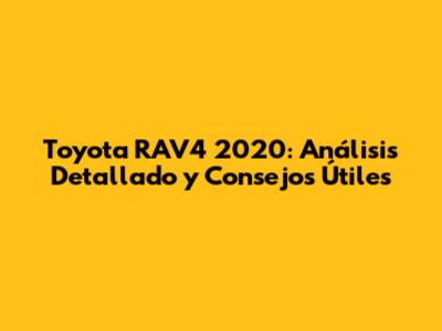 ¡Hola a todos los entusiastas de los coches! Si están buscando información detallada sobre el Toyota RAV4 2020, han llegado al lugar correcto. En este artículo, vamos a sumergirnos en todos los detalles de este SUV popular: desde su diseño y rendimiento hasta sus características de seguridad y tecnología. Además, les daremos algunos consejos útiles para que puedan tomar la mejor decisión de compra y mantener su RAV4 en óptimas condiciones. Prepárense para una guía completa en español, diseñada para ayudarles a conocer todo lo que necesitan saber sobre el Toyota RAV4 2020. ¿Listos para comenzar? ¡Vamos allá!