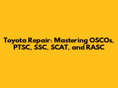 Hey there, gearheads and Toyota enthusiasts! Ever feel like diving deep into the inner workings of your trusty Toyota? Well, you've landed in the right spot! Today, we're taking a closer look at some key acronyms and concepts that often pop up when you're talking about Toyota repair and maintenance. We're talking about OSCOs, PTSC, SSC, SCAT, and RASC. Don't worry if these sound like a foreign language; we'll break it down so you can understand what they are and why they matter to your Toyota. Let's get started!