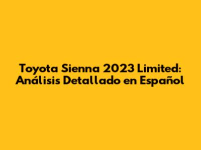 Toyota Sienna 2023 Limited: Análisis Detallado En Español